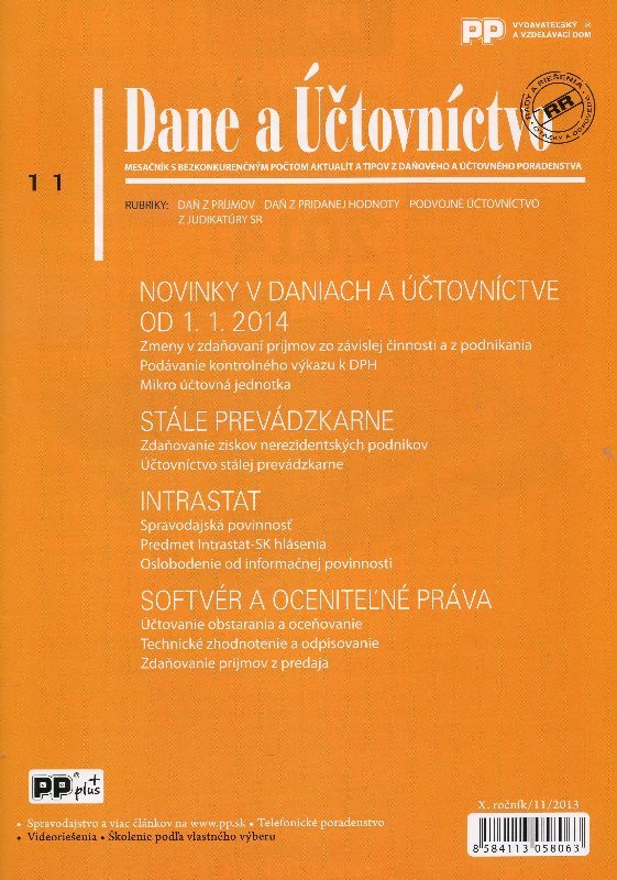 Novinky v daniach a účtovníctve od 1.1.2014 Stále prevádzkárne Intrastat Softvér a oceniteľné práva przeczytaj całość