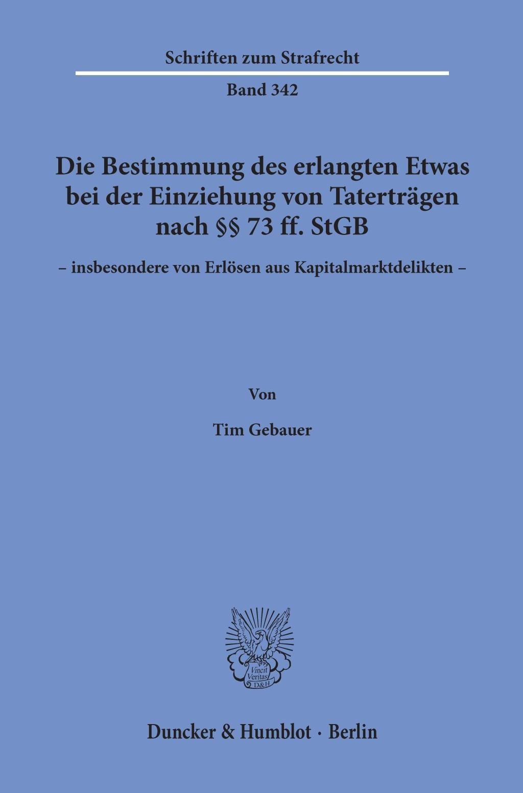 Die Bestimmung des erlangten Etwas bei der Einziehung von Taterträgen nach §§ 73 ff. StGB - insbesondere von Erlösen aus Kapital (niemiecki)