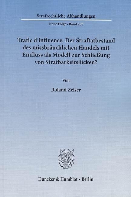 Trafic d'influence: Der Straftatbestand des missbräuchlichen Handels mit Einfluss als Modell zur Schließung von Strafbarkeitslüc (niemiecki)