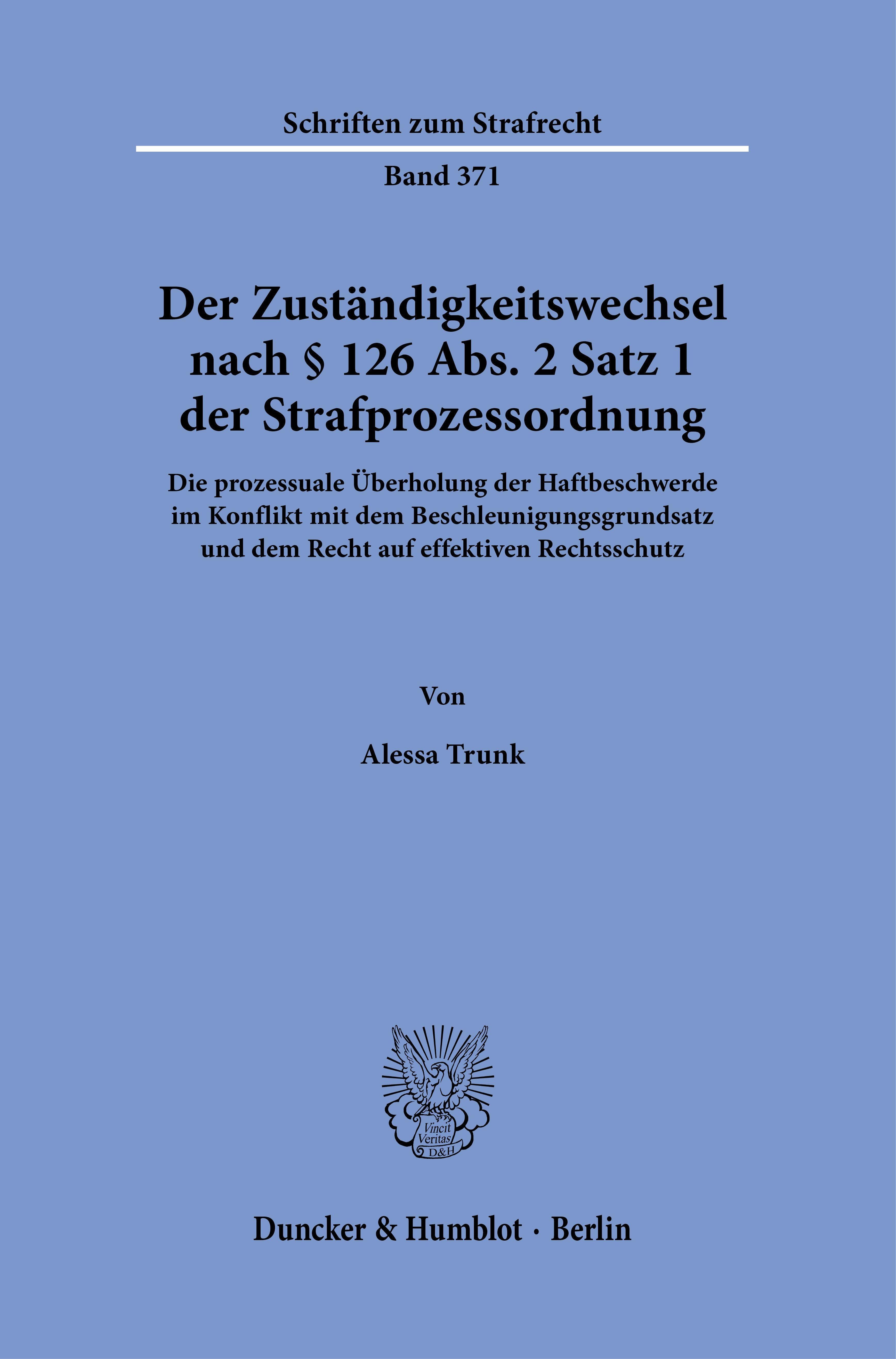 Der Zuständigkeitswechsel nach § 126 Abs. 2 Satz 1 Strafprozessordnung. (niemiecki)