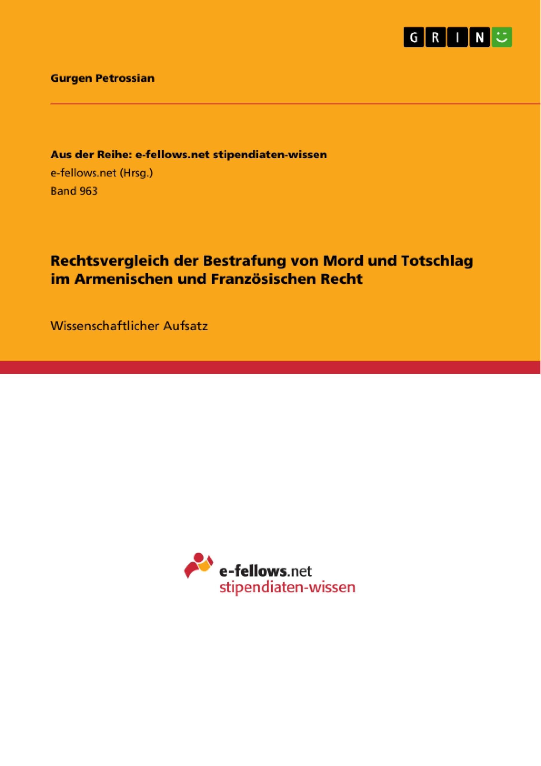 Rechtsvergleich der Bestrafung von Mord und Totschlag im Armenischen und Französischen Recht (niemiecki)