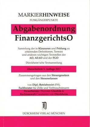 ABGABENORDNUNG & FGO Markierhinweise/Fußgängerpunkte für das Steuerberaterexamen Nr. 296 (2017): Dürckheim'sche Markierhinweise (niemiecki)