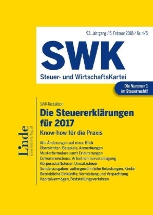 Musterformulare, Übersichten, Beispiele: Die Ausgabe 4/5 der SWK Die Steuererklärungen für 2017 erläutert praxisnah die abzugebenden Steuererklärungen und gibt Ihnen einen raschen Überblick zu den aktuellen Änderungen. przeczytaj całość