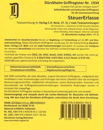 STEUERERLASSE Dürckheim-Griffregister Nr. 1934 (2018/57. EL) (niemiecki)