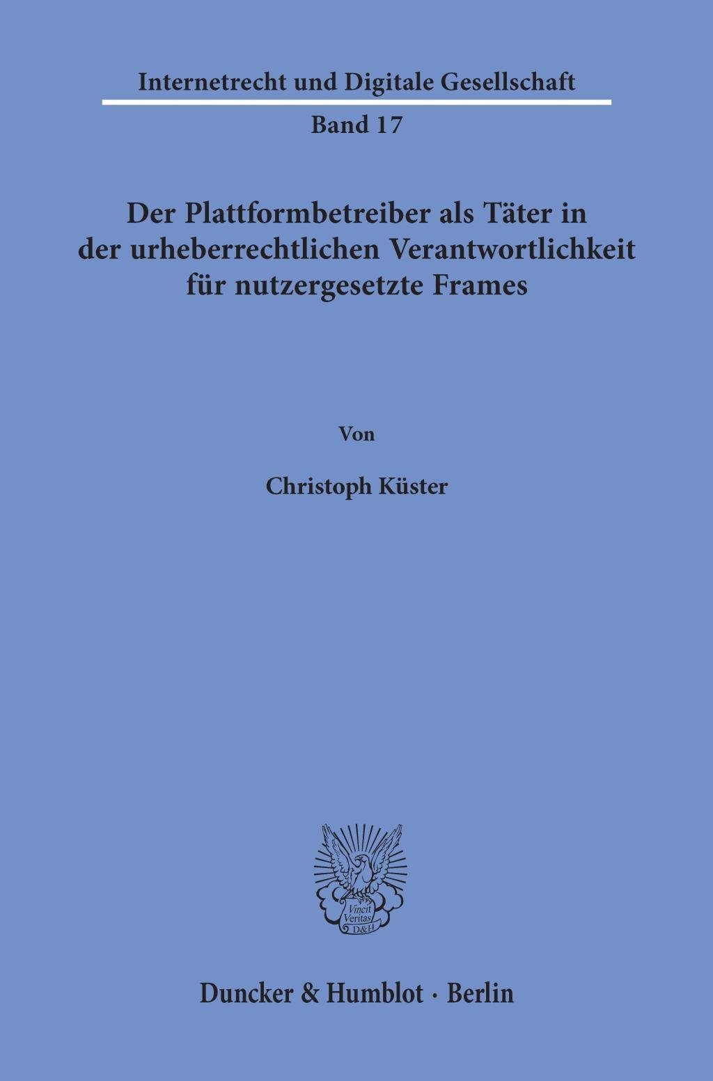 Der Plattformbetreiber als Täter in der urheberrechtlichen Verantwortlichkeit für nutzergesetzte Frames. (niemiecki)