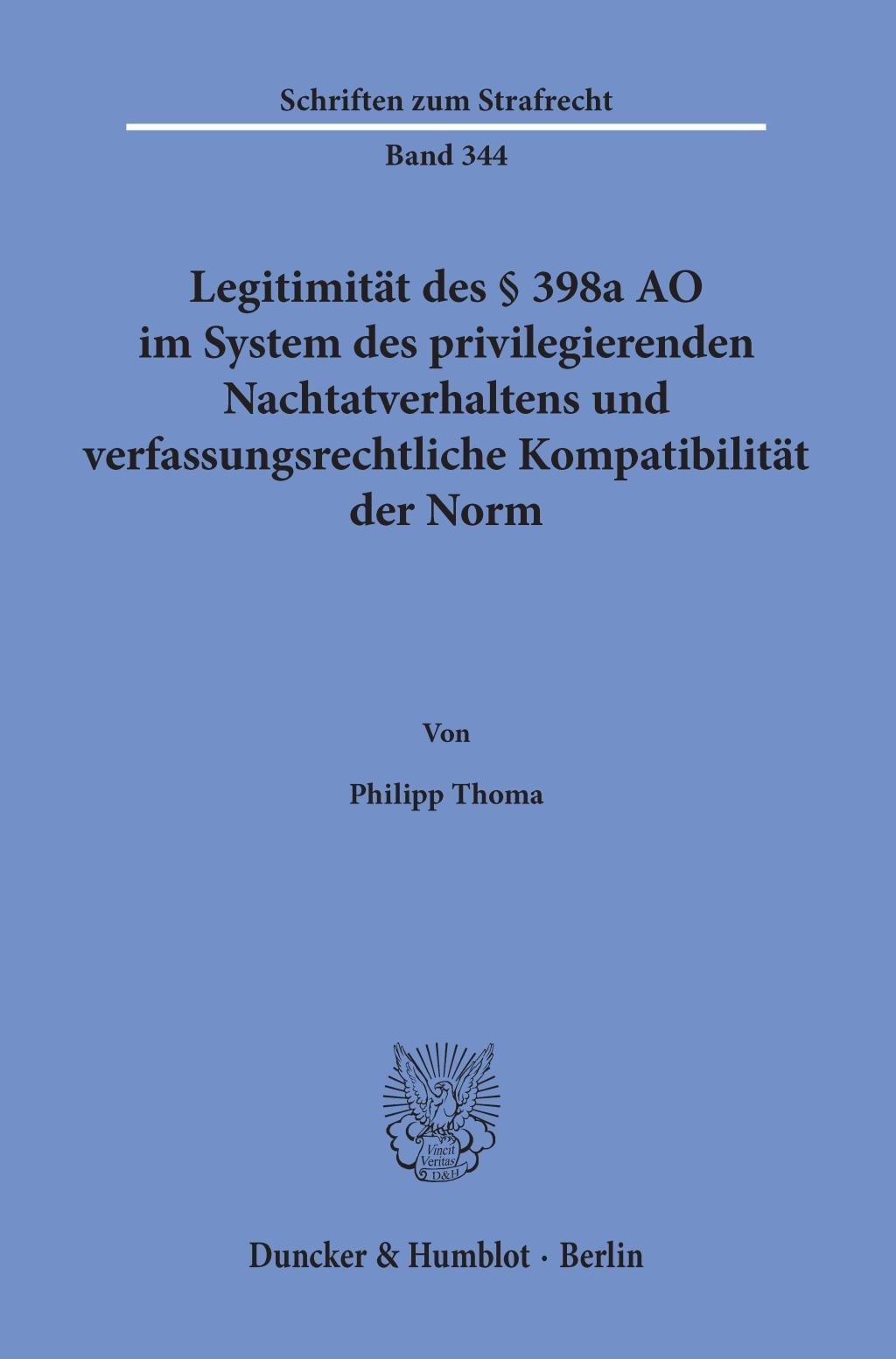 Legitimität des § 398a AO im System des privilegierenden Nachtatverhaltens und verfassungsrechtliche Kompatibilität der Norm (niemiecki)