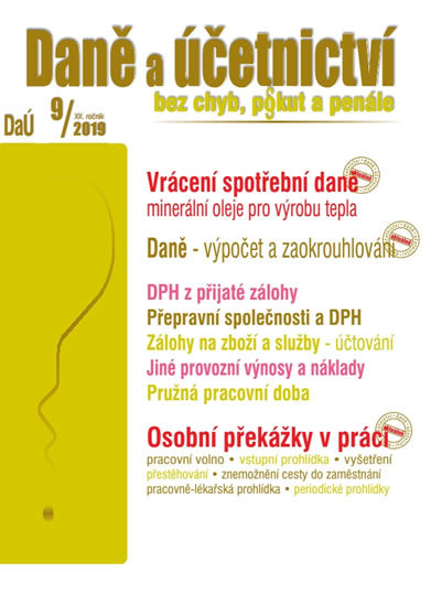 Daně a účetnictví 9/2019 - Vrácení spotřební daně, Výpočet a zaokrouhlování daně – novela, Oznamovací povinnost o osvobozených příjmech (czeski)
