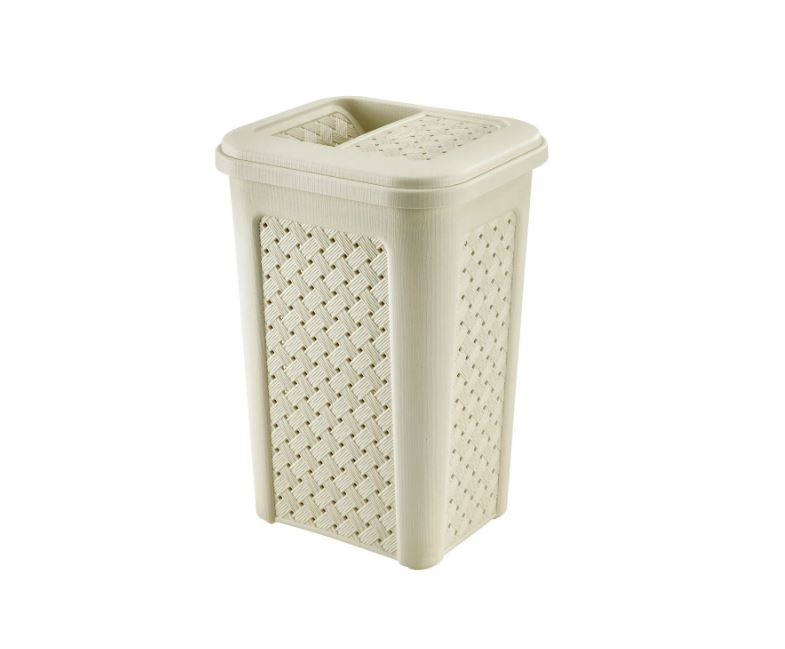 Kosz wyposażony jest w specjalną półotwartą pokrywę z pochyloną górną częścią, która ułatwia wkładanie prania oraz usuwanie drobnych odpadów. Wyraźny splotowany wzór z serii Arianna nadaje koszowi unikalny vintage'owy styl, który świetnie pasuje do różnych typów wnętrz - od nowoczesnych po tradycyjnie urządzone pomieszczenia.