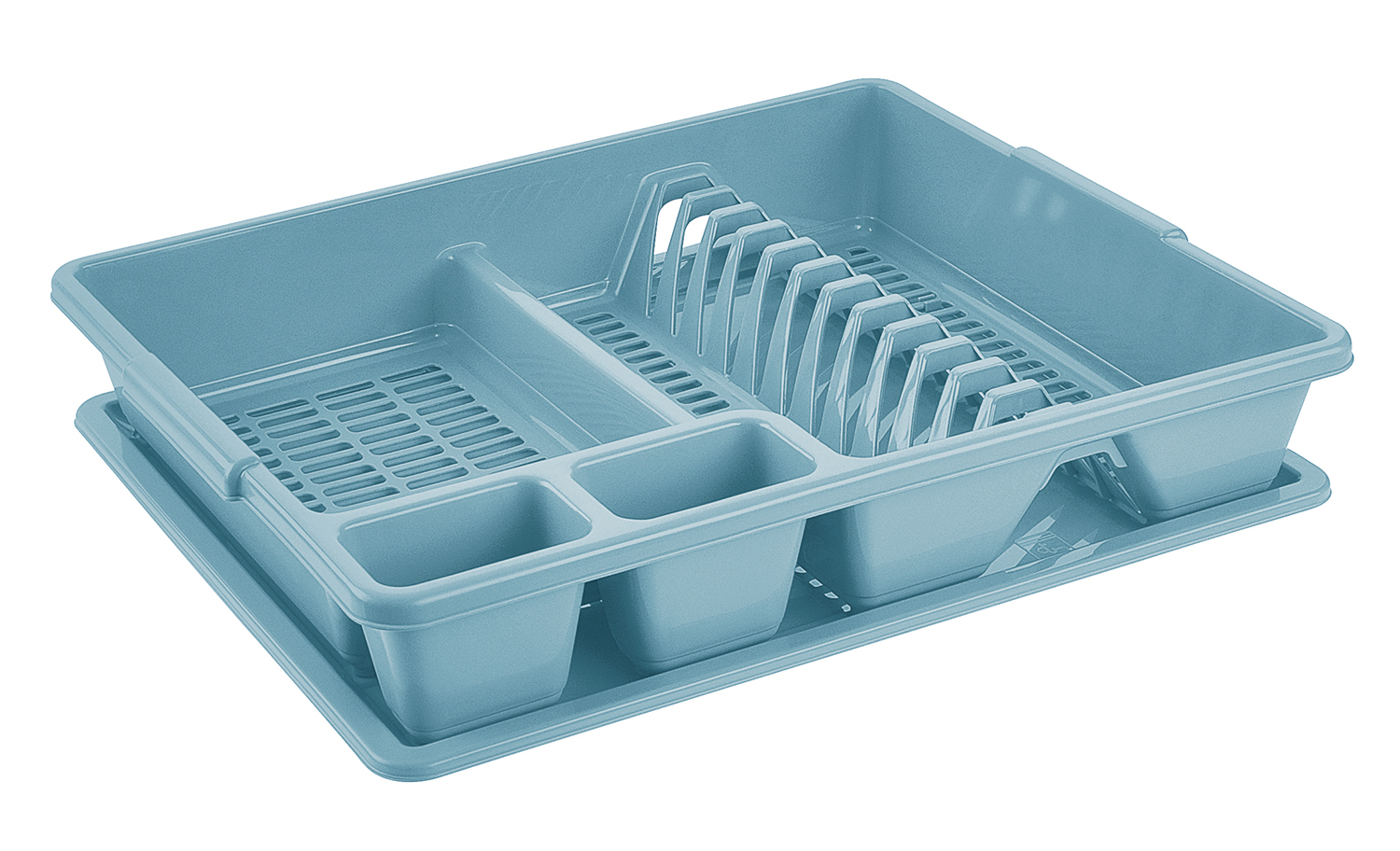 Ociekacz do naczyń LARGE, niebieski; 8,5x47x38cm prosty i funkcjonalny produkt z przegródką na ociekanie, dwiema przegródkami na sztućce i wolną przestrzenią na drobiazgi przeczytaj całość