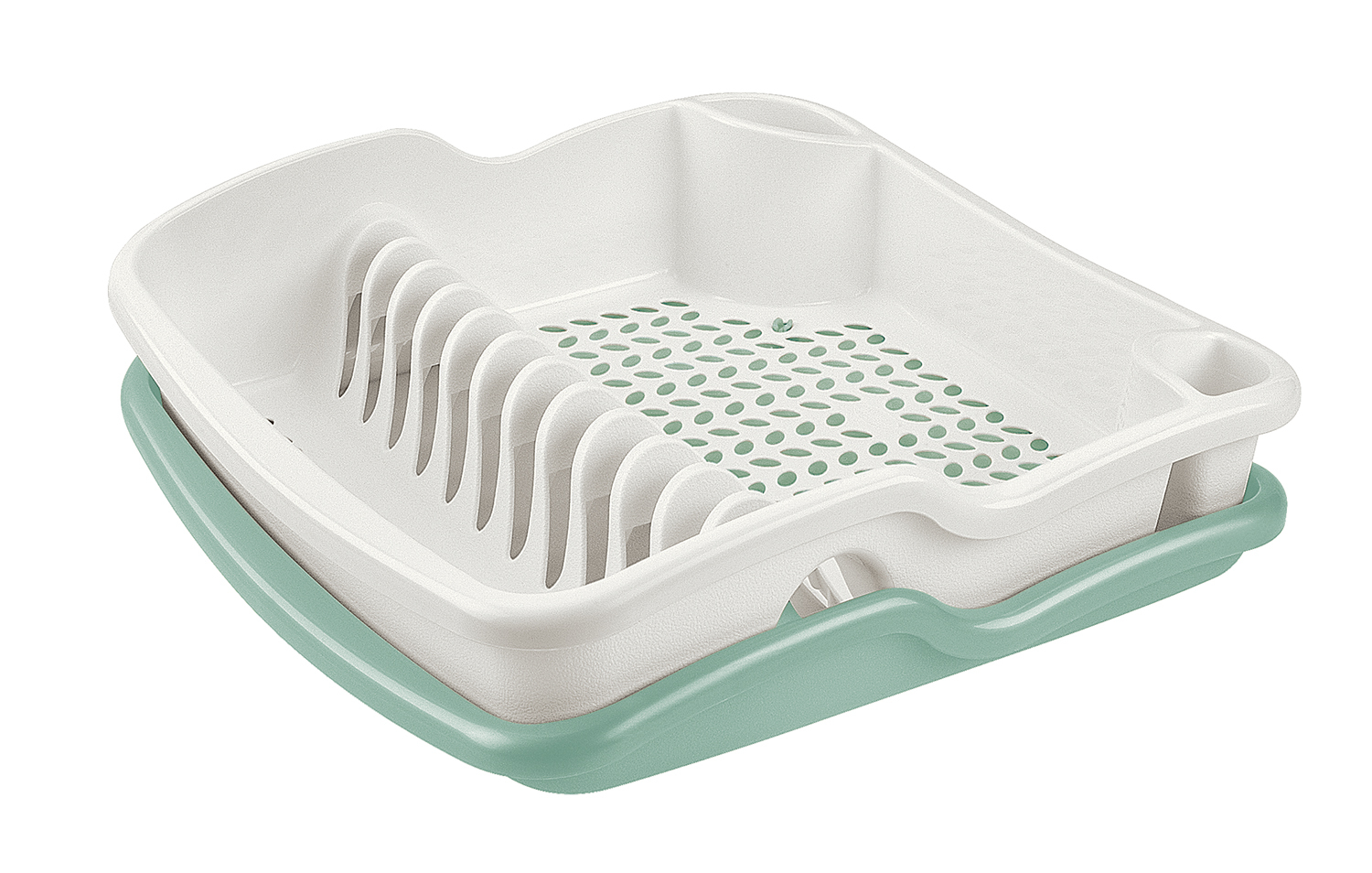 Odkapávač s tácem Brio bílá/zelená, 39x39xH11.