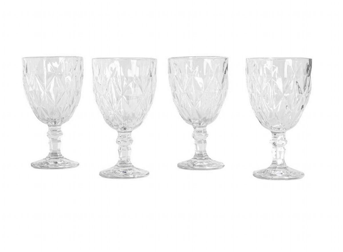 4 sklenice v ceně - Elegantní sklenice s reliéfním vzorem - Sada průhledných sklenic na víno LUNO, 4 ks.Podávejte víno v krásných sklenicích LUNO, které podtrhnou chuť a aroma vašeho oblíbeného nápoje. Sklenice s dekorativním reliéfním vzorem vypadají na stole nádherně – jsou dobrou volbou pro...