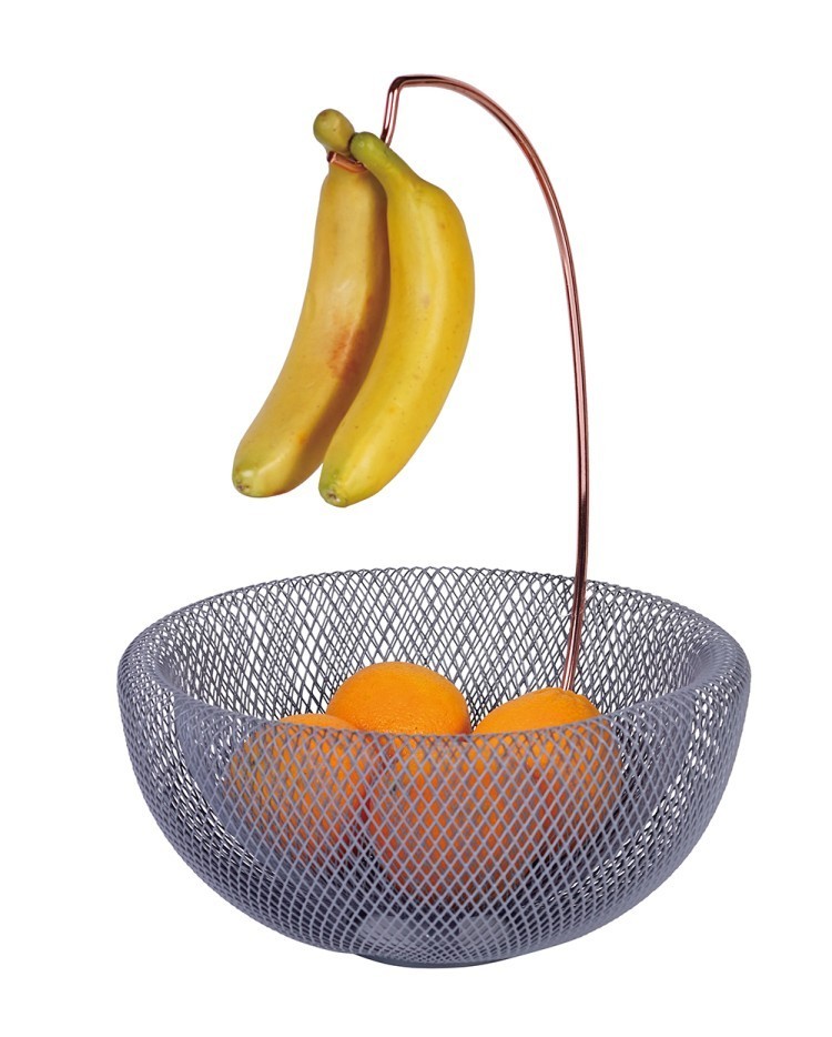 ocelový koš na ovoce z kolekce Moonlight Editionchromovaná úprava povrchu v šedé barvědoplněný o držák na zavěšení banánů nebo hroznůatraktivní a praktický doplněk do kuchyně i na Váš stůlrozměry: průměr 29,5 x výška 42 cmznačka: BerlingerHaus przeczytaj całość