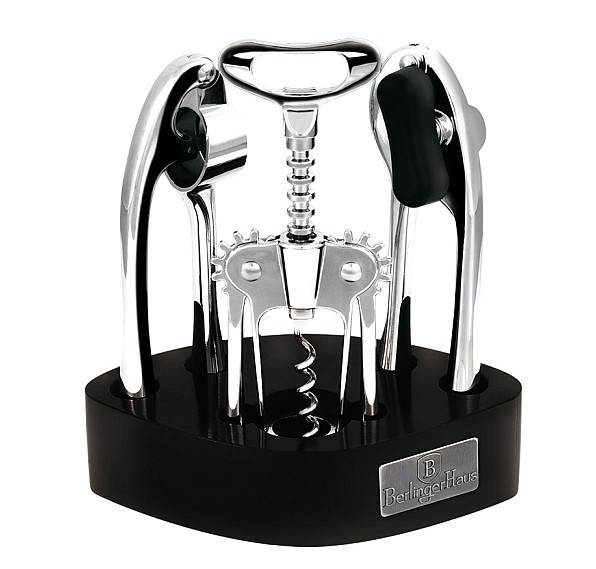 materiál: vysoce kvalitní slitina zinkučerný dřevěný stojanergonomické provedení, náčiní skvěle padne do rukysada obsahuje 4 kusy:otvírák na vínootvírák na konzervylis na česnekdřevěný stojan przeczytaj całość