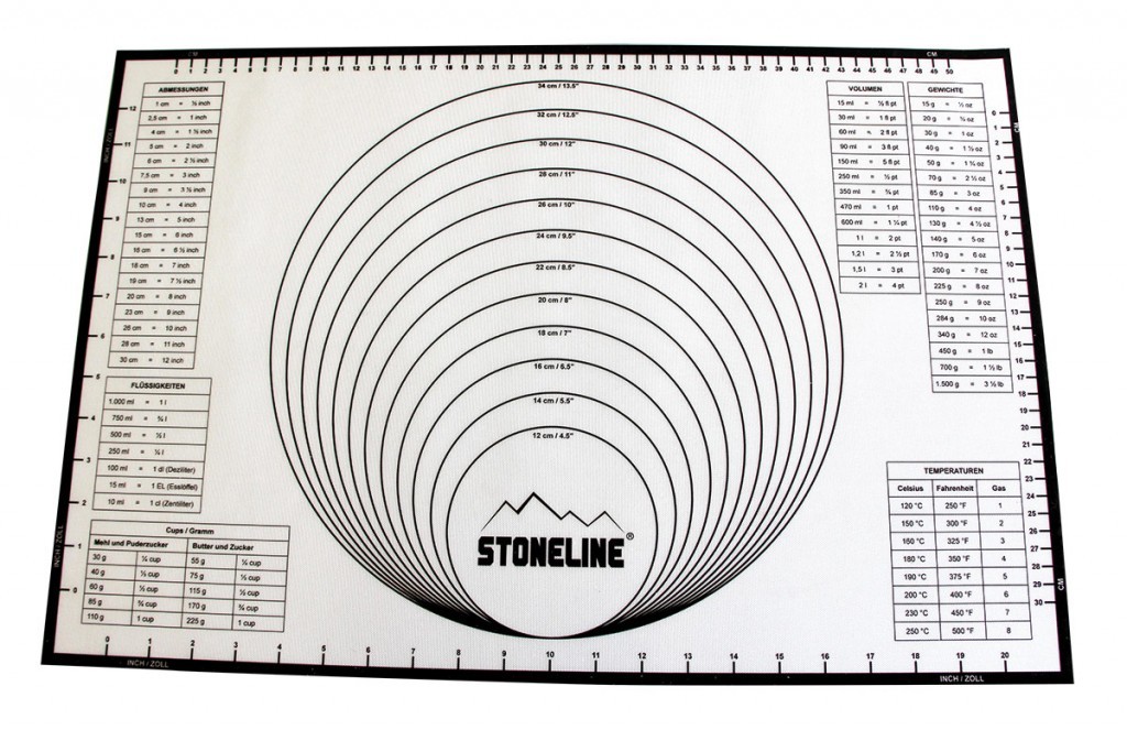 -materiál: silikon-rozměry: 58.5 x 38 cm-podložka obsahuje tabulky převodů jednotek a odměrné stupnice-lze použít i jako pečící papír-tepelně odolné až do 220 °C przeczytaj całość
