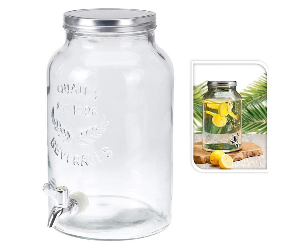 - stylová skleněná nádoba s dávkovacím kohoutkem a bohatým objemem