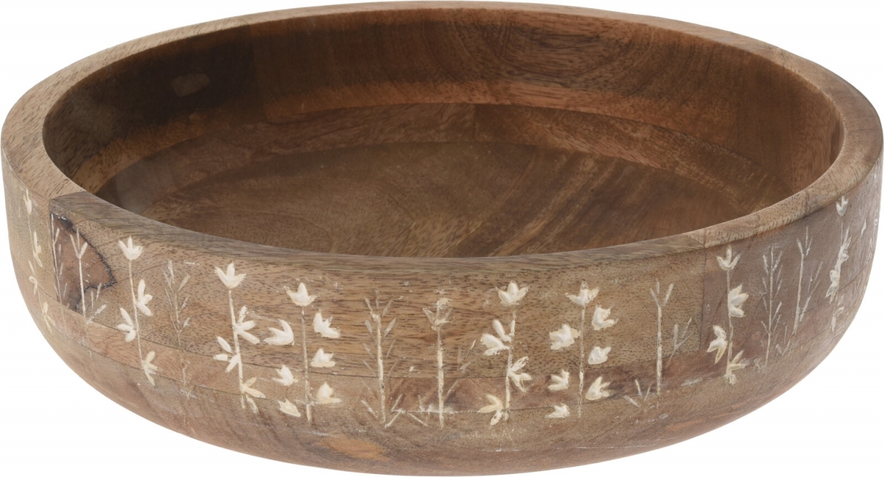 Dřevěná mísa z mangového dřeva s květinovým motivem. Každá mísa je originální výrobek přírodního dřeva.Materiál: mangové dřevoRozměry:výška 7 cmprůměr 29,5 cm przeczytaj całość