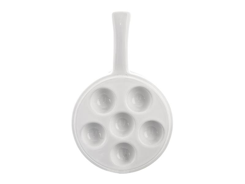 Pánev na šneky je určena k pečení 6 šneků v troubě (není určena na sklokeramiku, plyn, el. plotýnku, indukci ani do mikrovlnné trouby). Lze použít do max. 280 °C. Vlastnosti:- Materiál: keramika- Rozměry: pr. 16,5 cm, v. 3,5 cm, d. 26,5 cm, pr. jednotlivých sekcí 4 cm- Lze mýt v myčce przeczytaj całość