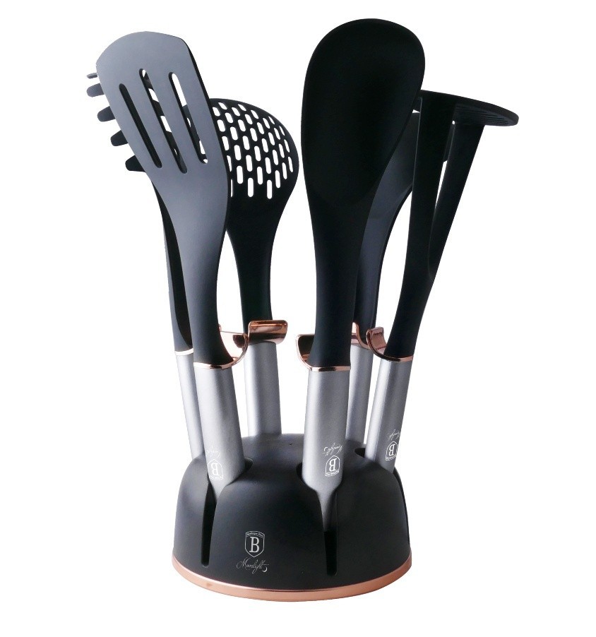 materiál: nylonodolné do 220°Cnylon je šetrný k vašemu nádobí, nikdy jej nepoškrábeideální pro nepřilnavé i keramické povrchypraktická nožička uprostřed náčiní, můžete jej položit a nezašpiníte si kuchyňskou linkuvšechno náčiní má očko, takže lze i zavěsitdesignově dokonalé a funkční náčiní pro...