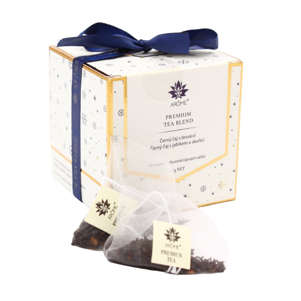 Chutný černý čaj ze Srí Lanky se dvěma různými ovocnými příchutěmi. Pět kusů od každé příchuti jsou zabaleny v pěkné krabičce. Ideální jako dárek pro Vaše milované. Příchuť: Černý čaj s broskví, Složení: Černý čaj 95,5 %, broskvová příchuť 2,5 %, kousky jablek 2 %. Příchuť: Černý čaj s jablkem a skořicí, Složení: Černý čaj 95,5 %, jablečné aroma 2 %, skořicové aroma 1,5 %, kousky skořice 1 %.