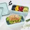 dvě krabičky pro uložení jednotlivých potravin odděleně, například. chléb či rohlík zvlášť, zelenina nebo ovoce zvlášť