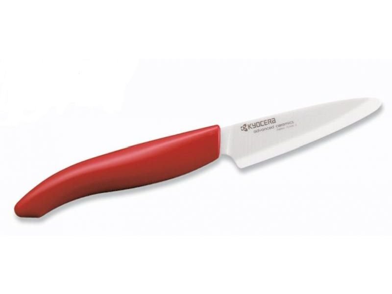 KYOCERA keramický nůž s bílou čepelí/ 7,5 cm dlouhá čepel/ červená plastová rukojeť