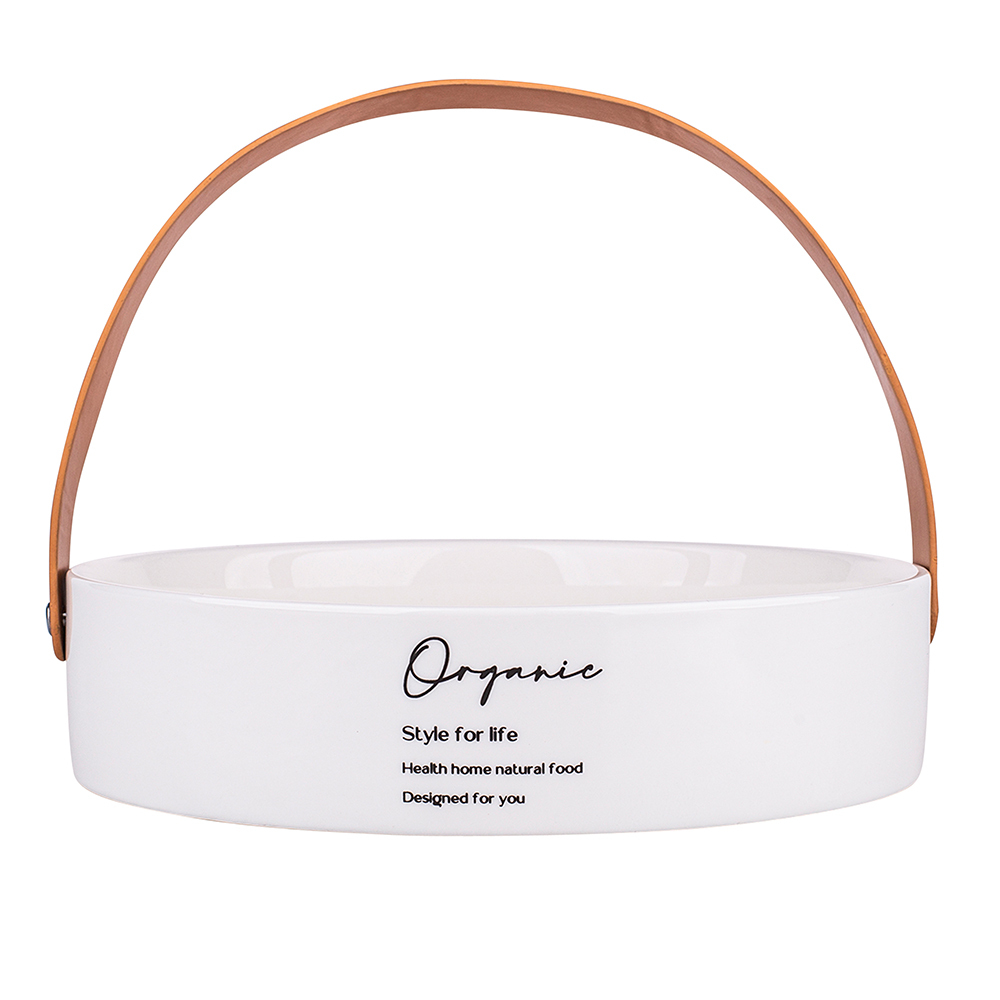 ORGANIC PORCELÁNOVÁ MISKA S KOŽENÝM UCHEM 22CM VÝŠKA 6CM