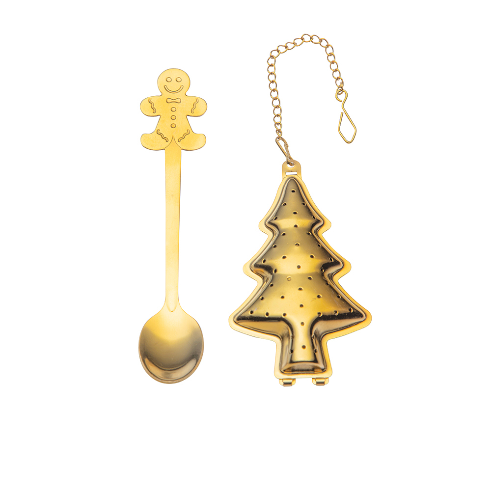 ZLATÝ ČAJOVÝ SET S OZDOBNOU CHOINKOU/PERNÍČKEM