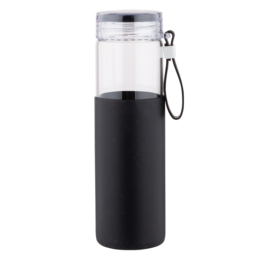SKLENĚNÁ LÁHEV V SILIKONOVÉM OBALU 425ML ČERNÁ