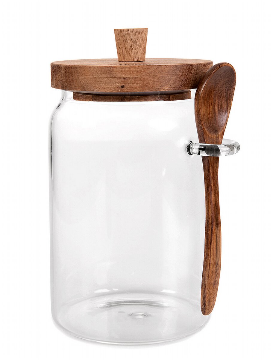 Sleněná dóza | CARLOS | sklo s akátovou lžičkou | 0,9 l | 844107 Homla