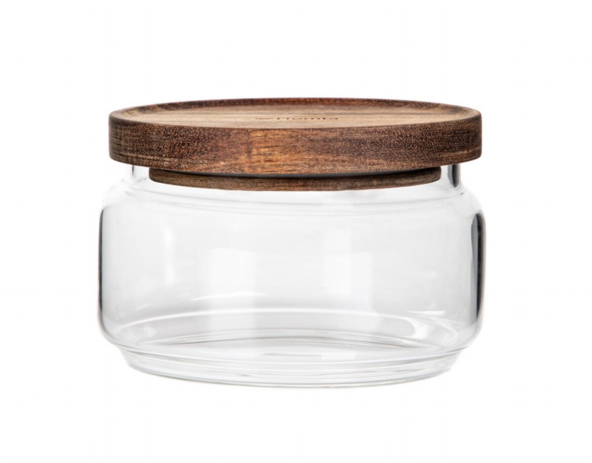 Dóza GABIN | skleněná nádoba s akátovým víkem | 0,7 l | 891682 Homla