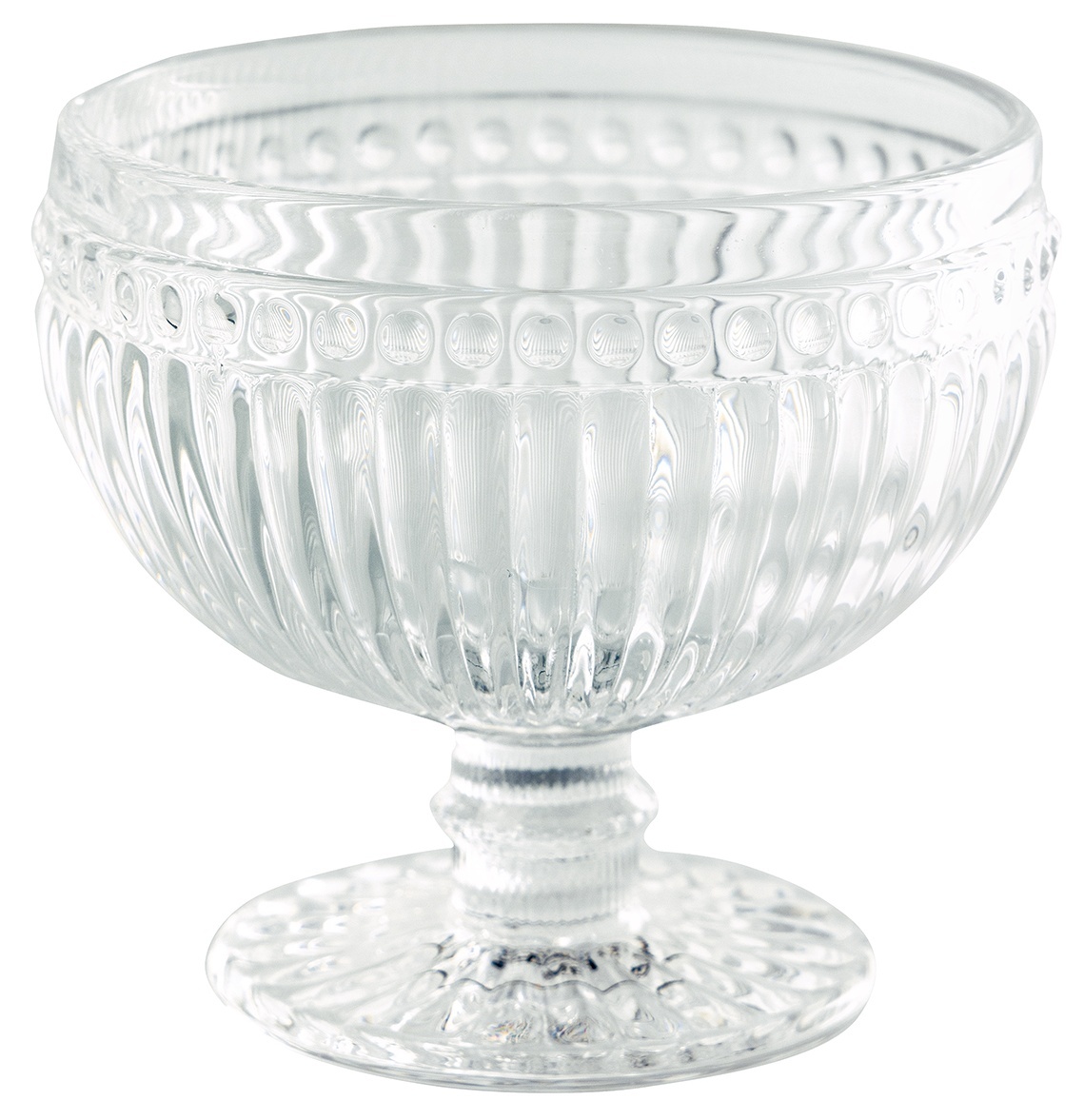 Zdobená skleněná miska na nožce Alice Clear je součástí kolekce Alice dánské značky GreenGate przeczytaj całość