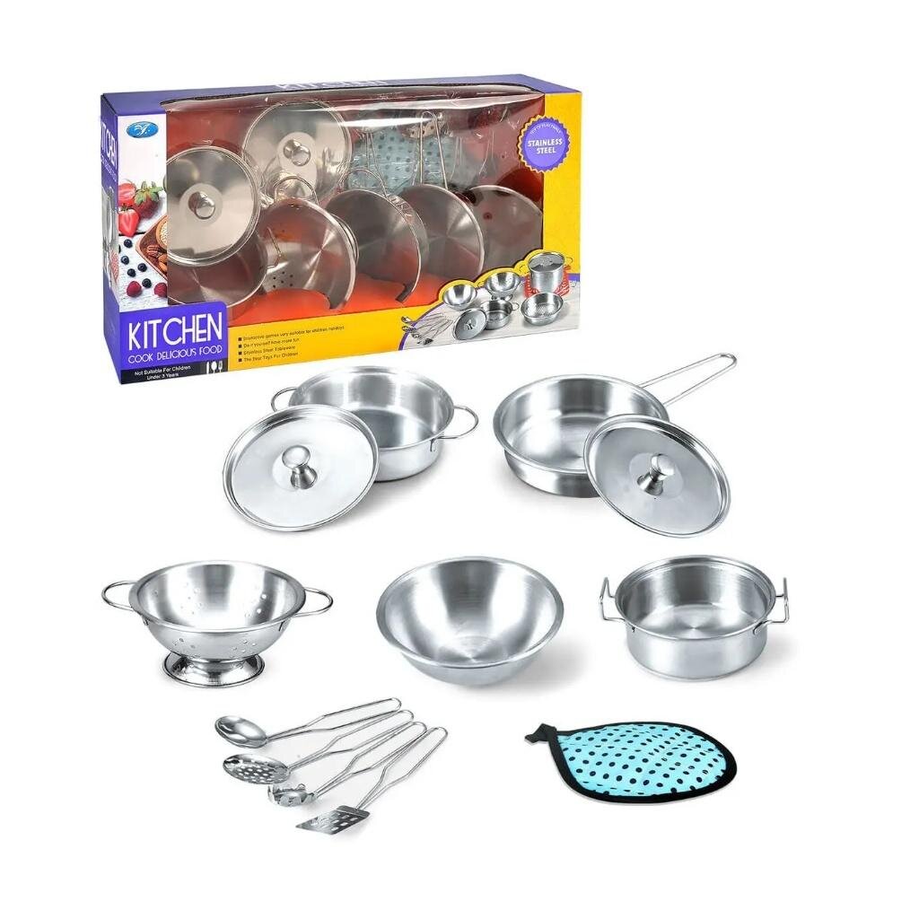 Zestaw naczyń, garnków metalowych dla dzieci z przyborami - 12 el.Nasz zestaw kuchenny dla dzieci to fantastyczna zabawka, która przeniesie Twoje dziecko w świat kulinarnej przygody, rozwijając jednocześnie jego kreatywność i umiejętności manualne. Kompletny zestaw metalowych naczyń,...