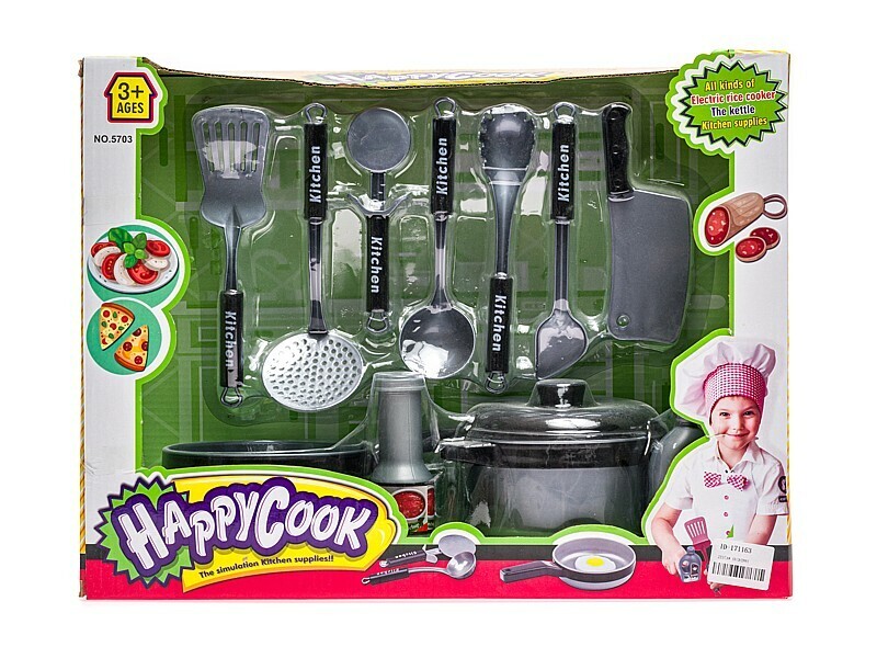Zestaw kuchenny 546080Zestaw kuchenny z akcesoriami W skład zestawu wchodza różne łyzki kuchenne, nóż szefa kuchni , garnek , patelnia I również jajko, ketchup , mleko Całość zapakowana jest w pudełko z okienkiemWspaniała zabawka dla malych kucharzy Wymiary opakowania : 40 x 31 x 15,5 cm Wiek : 3+ przeczytaj całość