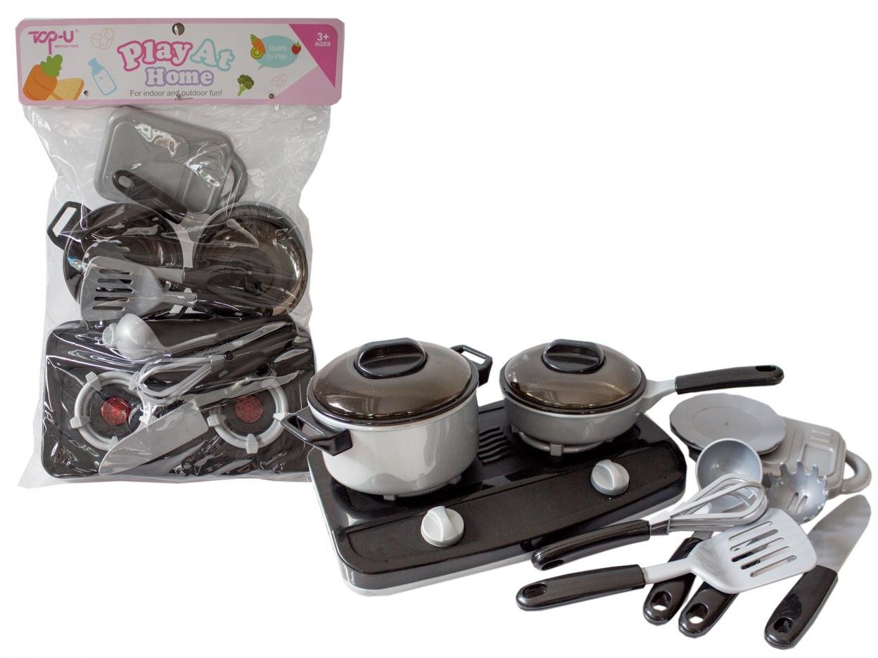 13 elementów: kuchenka, 2 garnki z pokrywką, 2 talerzyki, deska, nabierka, nóż, trzepaczka, łyżka do makaronu, szpatułka, baterie 2xAA (brak w zestawie). przeczytaj całość