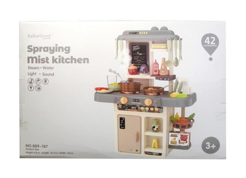Kolorowa kuchenka dla dzieci wraz z akcesoriami. Zestaw składa sie z 42 części i poza kuchenką znajduje się m.in.: nóż, widelec, łyżka, garnek, talerzyki, miska, butelka mleka, jajko, warzywa, szklanka, parówki. Wszystko dostosowane dla dzieci. Zabawka św przeczytaj całość
