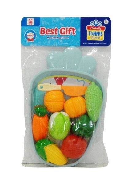 Zestaw warzyw do krojenia. W zestawie znalazły się m.in.: dynia, pomidor, papryka, kukurydza, marchewka, kapusta pekińska, nóż, deseczka oraz taca w kształcie truskawki. Produkt zapakowany w przezroczysty worek. Zabawka dla dzieci od 3 lat. Podane wymiary są wymiarami opakowania. przeczytaj całość