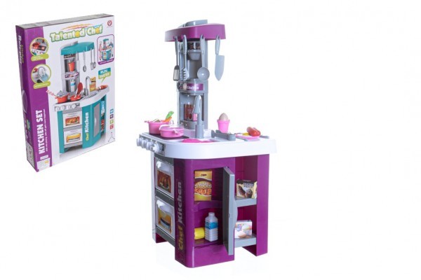 Kuchyň s doplňky sada 49ks plast na baterie se zvukem se světlem v krabici 48x70x12cm