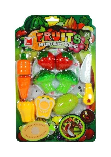 Zestaw owoców i warzyw do krojenia wraz z nożem i talerzykiem. Owoce i warzywa to m. in.: truskawka, brokuł, marchewka, papryka. Produkt zapakowany w przezroczyste opakowanie. Zabawka dla dzieci od 3 lat. Podane wymiary są wymiarami opakowania. przeczytaj całość