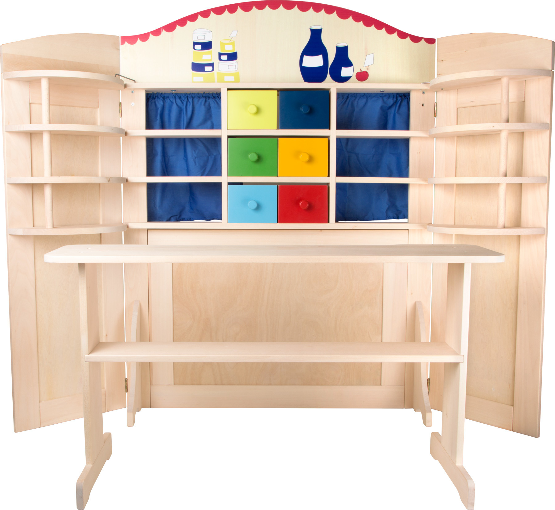 Rychlá přeměněna obchodu na loutkové divadlo! Pohyblivé boční profily a stylové poličky. Bez dekorací, které lze dodatečně přikoupit.Německá firma Legler zaměřená na výrobu kvalitních dřevěných hraček od roku 1996. Všechny dřevěné hračky značky small foot mají označení CE a jsou vyráběny dle...