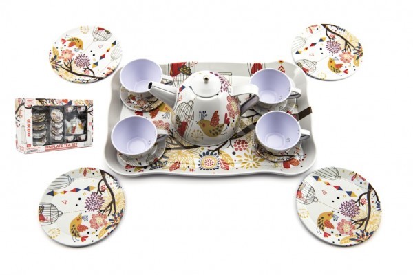 Čajová sada nádobí plechové 15ks v krabici 32x21x10cm