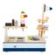 Stoisko ma wymiary 45 × 21 × 47 cm, a blat roboczy znajduje się na wysokości 11 cm, co odpowiada zarówno dzieciom, jak i dorosłym. Wysoka jakość wykonania drewna i przemyślany design gwarantują długą żywotność i estetyczny wygląd.