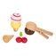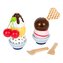 - Łącznie 21 elementów, w tym drewniane stoisko, łyżka do nabierania, pojemniki z polewą, rożki, miseczki, małe łyżeczki i ozdoby