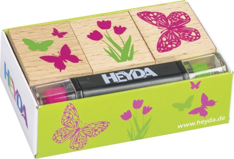 HEYDA Dřevěná razítka s polštářkem - jaro 3 ks