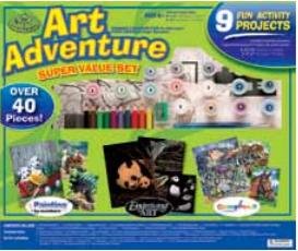 Začněte své projekty s 9 dílnou sadou Art Adventure®. Sada obsahuje 5 ”x 7” a 8 ”x 10” gravírování Art ™ designy, Malování podle barvami čísel a Malování podle patelkami čísel. Sada obsahuje: 14 kalíšků s barvami,10 pastelek, 9 předtištěných desek, 3 cvičné listy, 2 číslované průhledné překrytí, 3 cvičné kousky, 2 štětce taklon, 1 škrabadlo, 1 ořezávátko, 1x 18-jamková paleta, 1 Návod k použití.