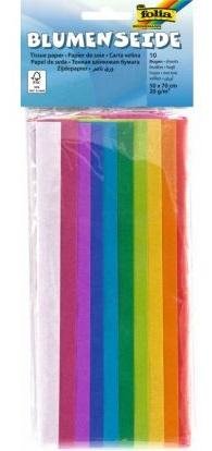 Hedvábný papír v nádherných sytých barvách. Balení: 10 listů v 10ti barvách (bílá, růžová, tmavší růžová, fialová, azzurová modrá, tmavě zelená, světle zelená, žlutá, oranžová, červená) Rozměr: 50 x 70 cm Gramáž: 20g/m2 przeczytaj całość
