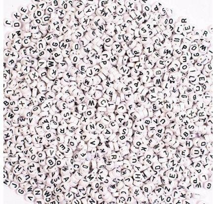 Playbox Bílé kulaté korálky 7,5 mm s písmenky 500 ks