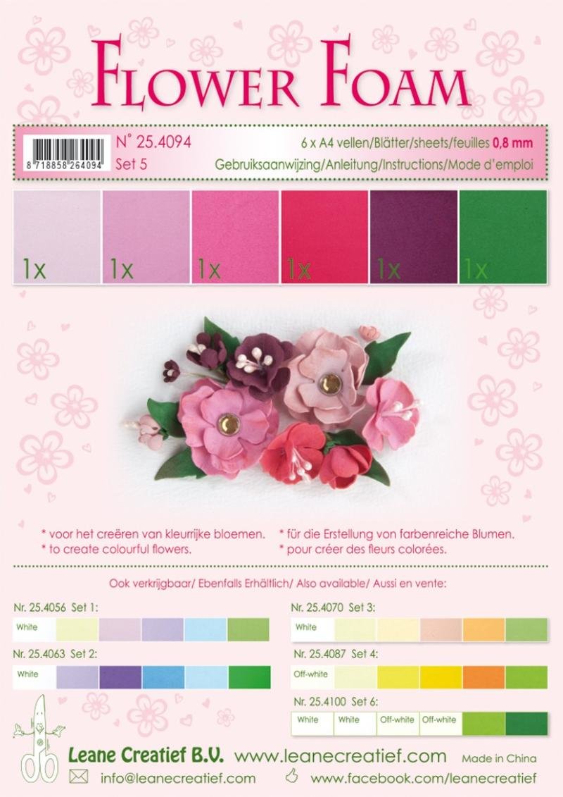 Flower Foam Speciální pěnová guma A4 - červenorůžové barvy 6 ks