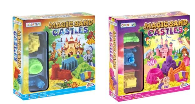 Sada obsahuje: 3 formičky, 4 sáčky se třpytivým pískem, 2 tvarovací nože, váleček, krabičku na případné uskladnění písku. Velikost krabice: 26 x 25,5 x 5 cm. Vhodné pro děti od 3 let. Bez možnosti výběru balení. przeczytaj całość