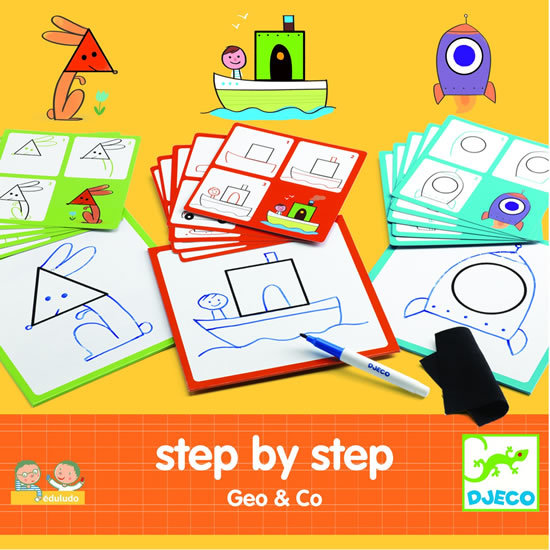 Sada 30 návodů a tří mazacích tabulek, smývatelná fixa a čistící houbička. Děti kreslí jednoduchými tahy podle návodů obrázky. Vhodné pro děti od 3 let. Rozměr krabičky 21,55x21,5x3cm przeczytaj całość