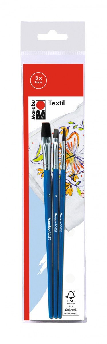 Sada 3 štětců pro malování na látky. Vysoce kvalitní štětce Forte jsou vhodné také pro akrylové, olejové barvy a texturované pasty a gely. Rukojeti jsou vyrobeny z dřeva z odpovědně spravovaných lesů. Forte plochý č.6 a 12, Forte kulatý č.6. przeczytaj całość